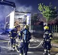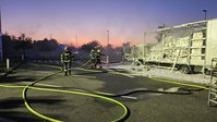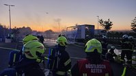 Wenige Minuten nach der Alarmierung rückte unser RLFA Richtung Einsatzadresse ab. Vorort führten bereits 2 Atemschutztrupps eine umfangreiche Brandbekämpfung durch. Der Brand hatte zu diesem Zeitpunkt bereits auf einen Teil des Ladeguts übergegriffen. Wir speisten in der Erstphase die wasserführenden Fahrzeuge aus Enns und stellten den Atemschutz-Reservetrupp.