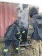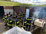 Bei der ersten Einheit wurde ein Brand in einer kleinen Holz-Box simuliert, wobei hier bereits alle Phasen der Verbrennung aus der vorgehenden Theorie veranschaulicht werden konnten. Im Anschluss an die Einführungsrunde folgte der erste Durchgang im Brandcontainer mit einem Brand von mehreren Paletten. Durch die abwechselnde Öffnung und Schließung der Containertüren konnte die rasche Ansammlung der giftigen und brennbaren Gase, sowie das weitere Verhalten des Brandes sehr gut beobachtet werden. Weitere Phänomene wie die thermische Aufbereitung des umliegenden Brandguts, das Erreichen des Zündpunkts und die „Rolling Angels“ ließen die Temperaturen während des etwa 20-minütigen Durchgangs ordentlich steigen.